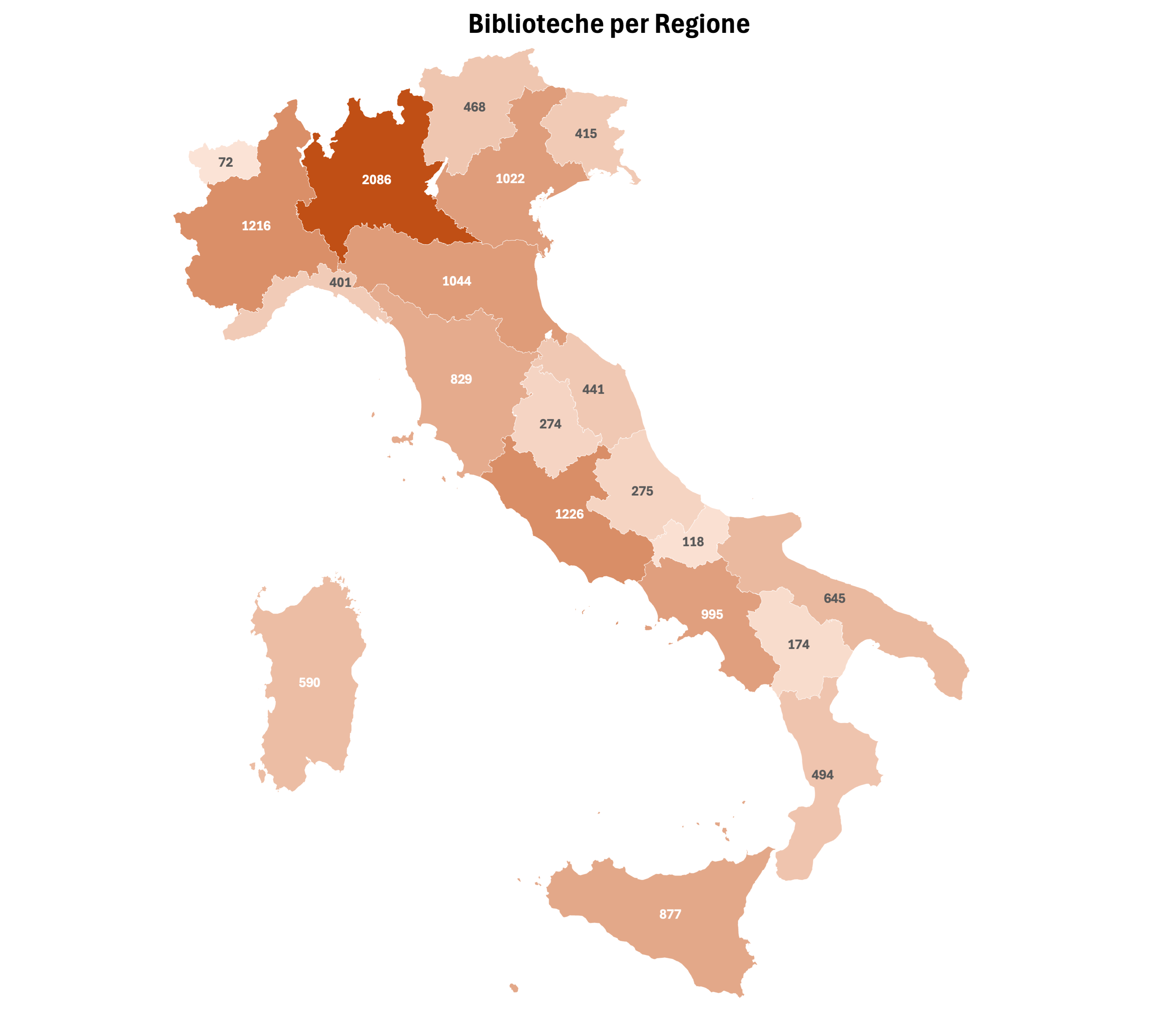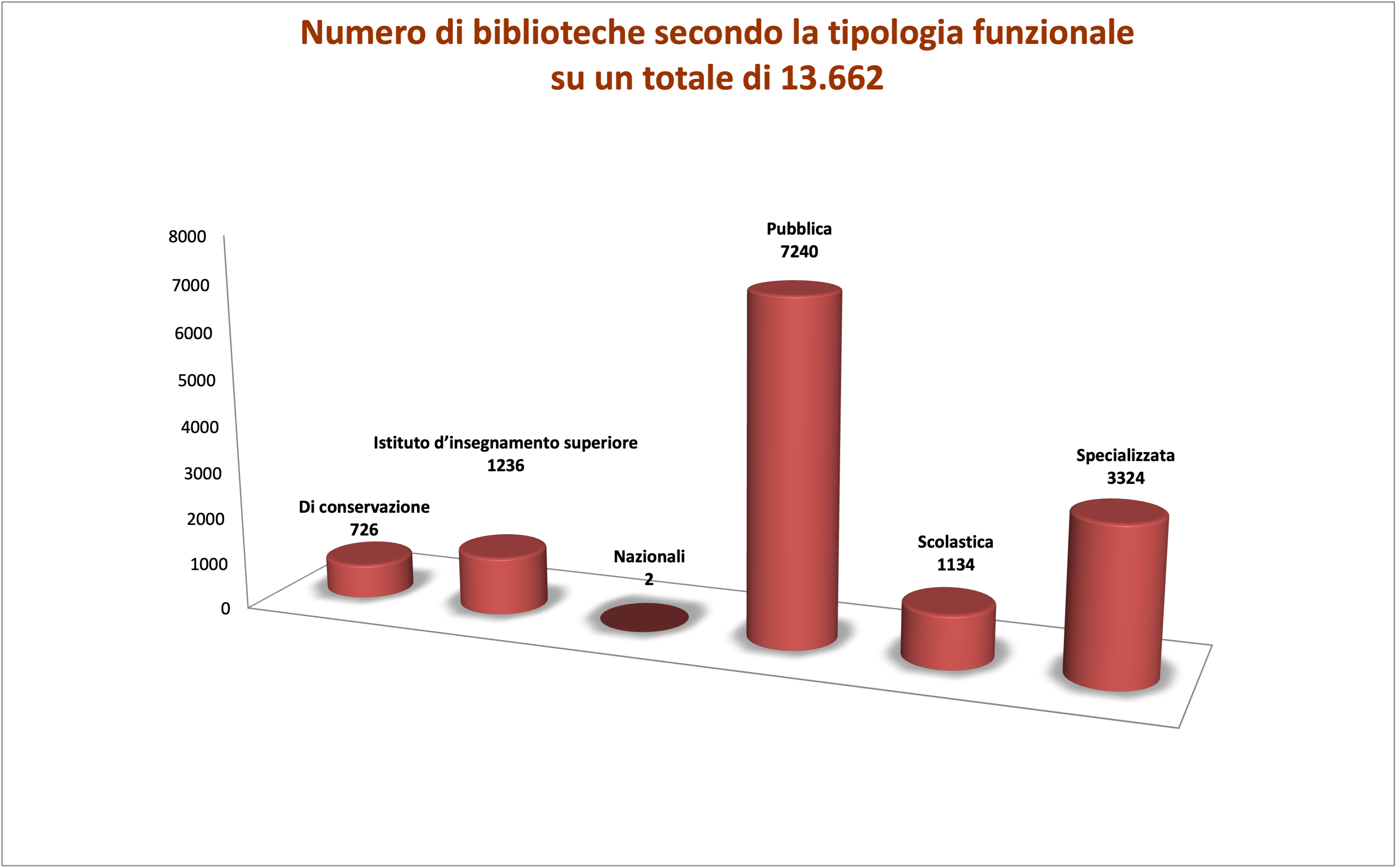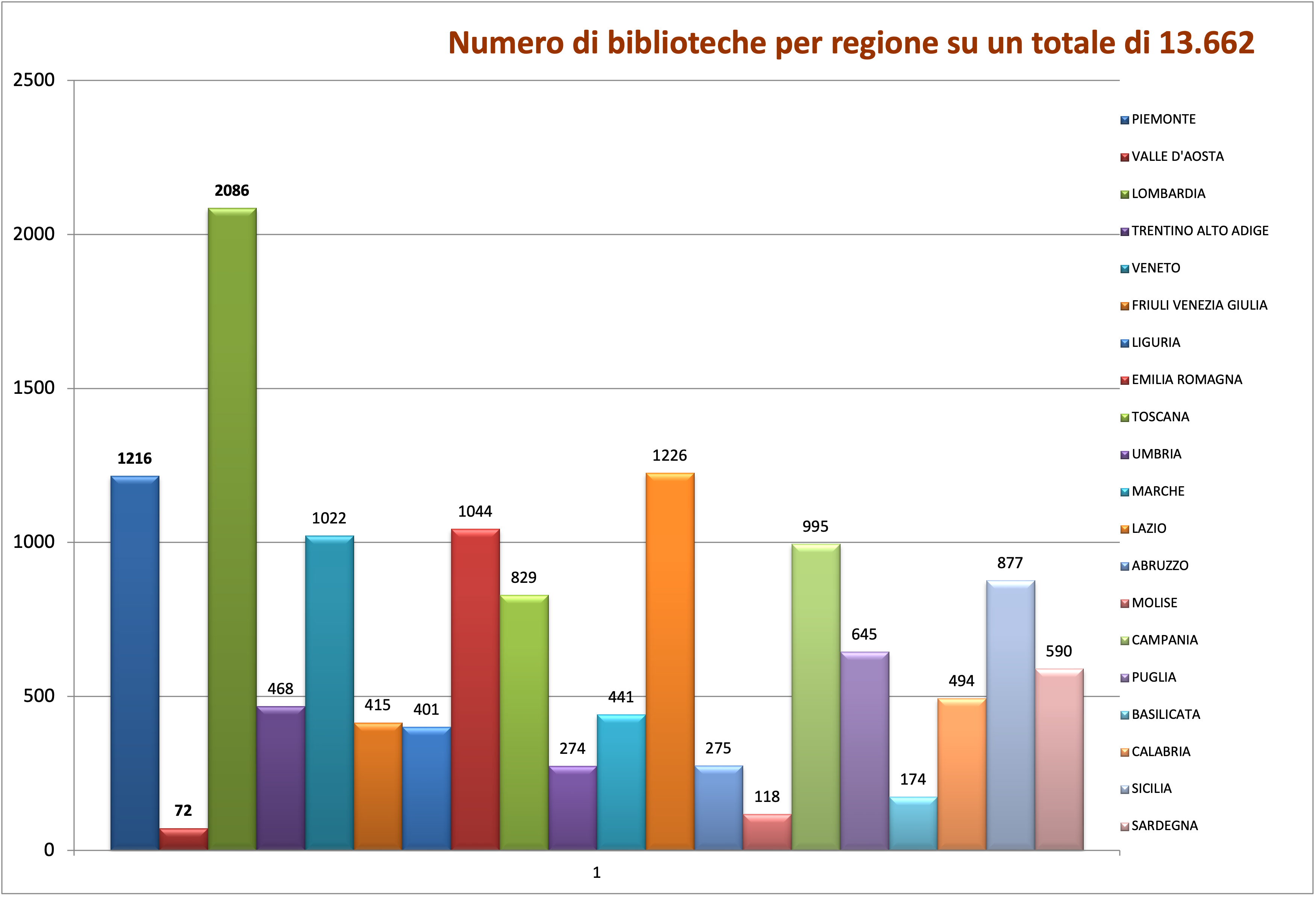 Numero di biblioteche per regione su un totale di 13.662