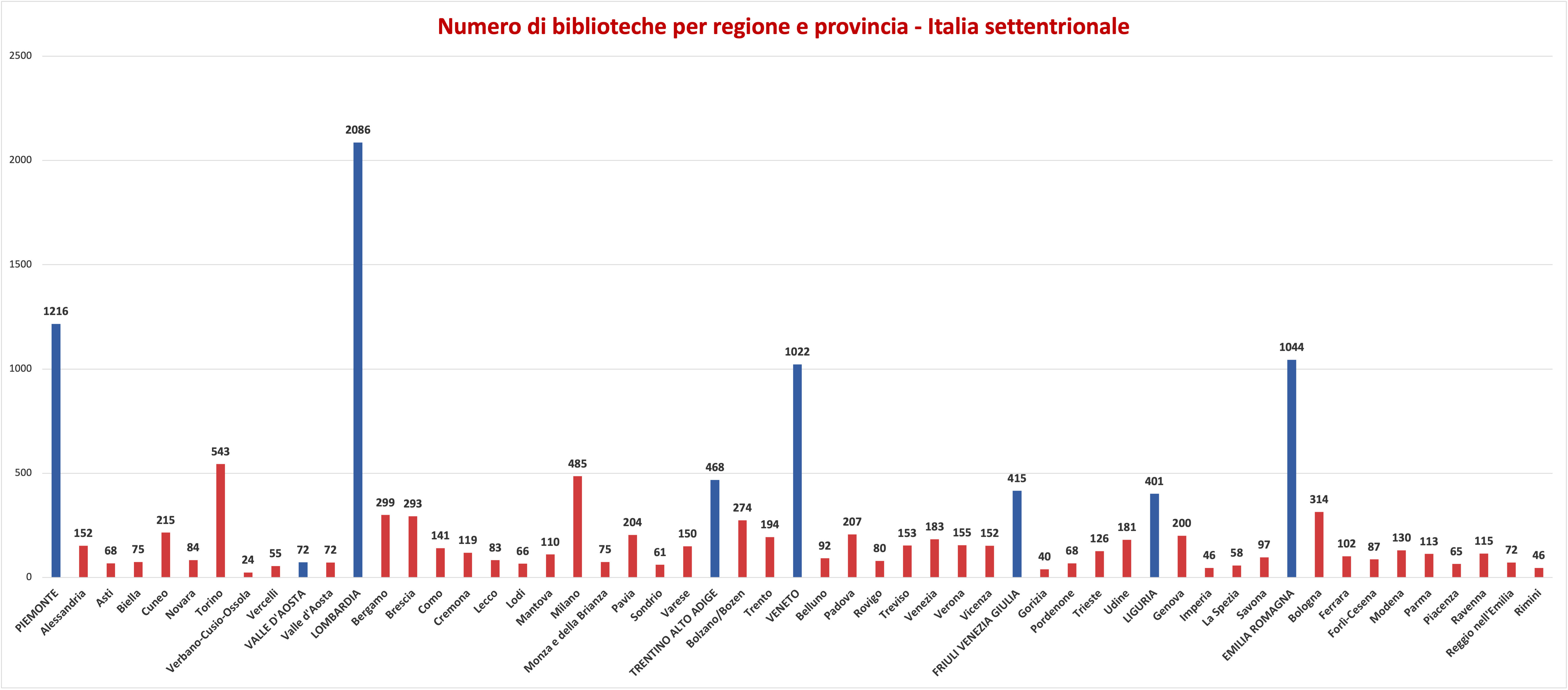 Numero di biblioteche per regione e provincia - Italia settentrionale