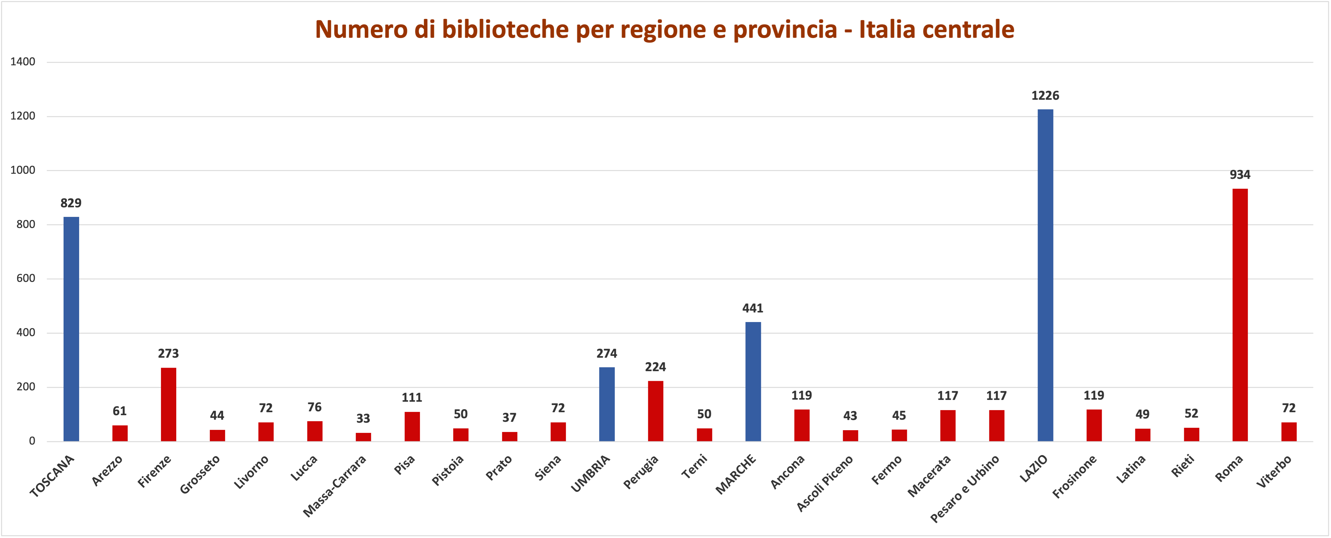 Numero di biblioteche per regione e provincia - Italia centrale