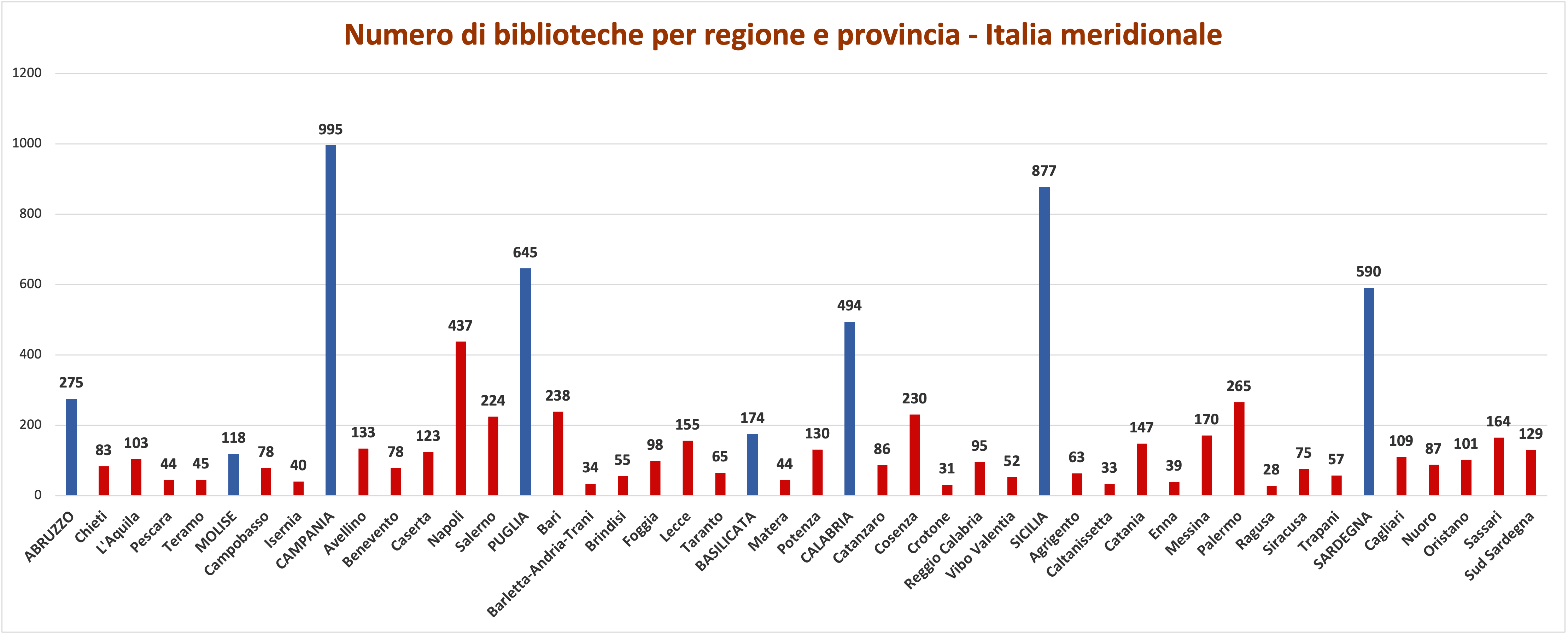 Numero di biblioteche per regione e provincia - Italia meridionale