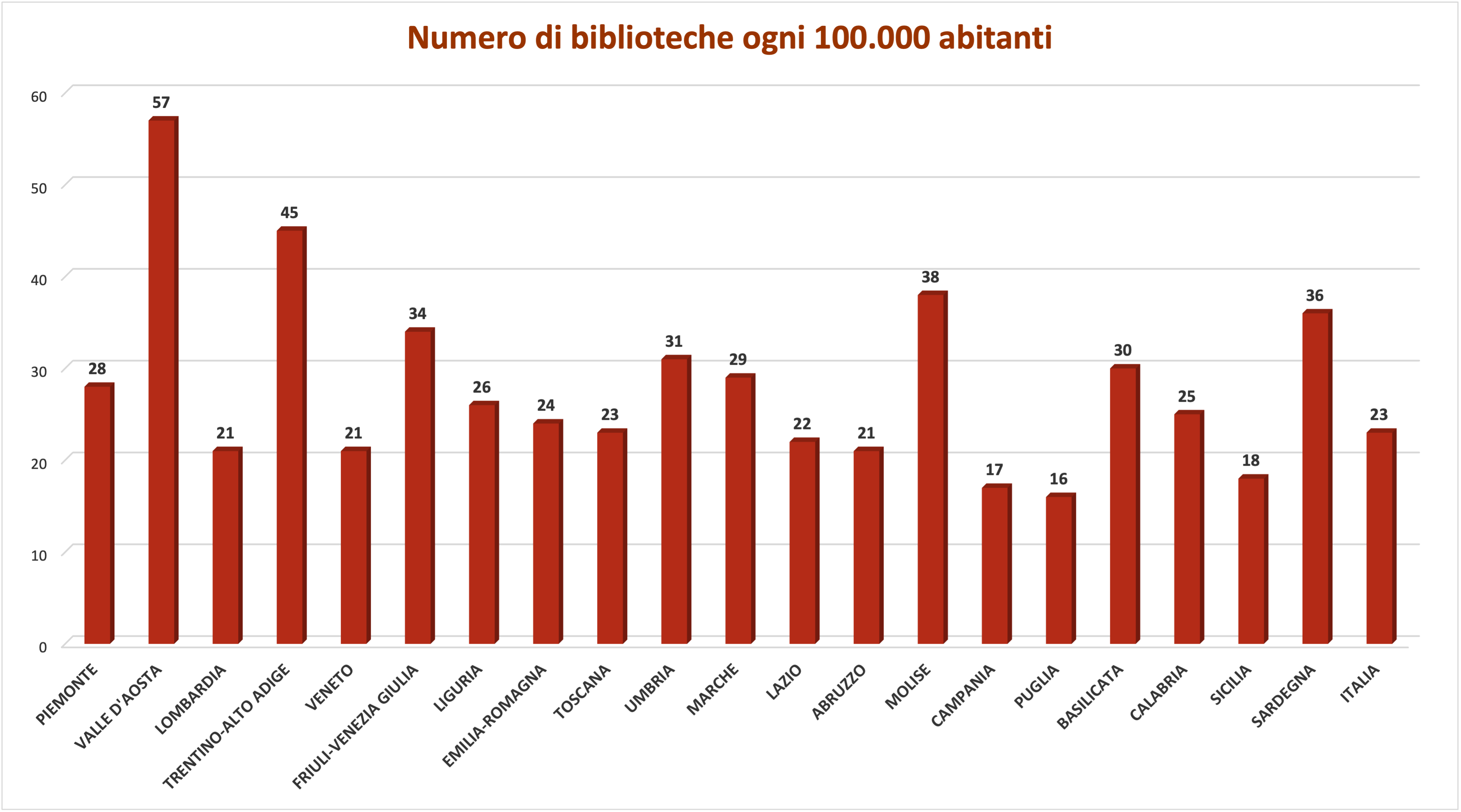 Numero di biblioteche per 100.000 abitanti